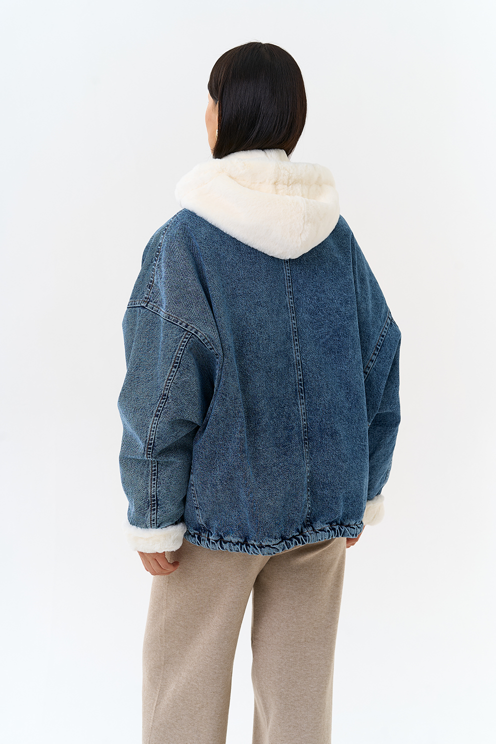 Крой воротника - съемный капюшон, отделка эко мех