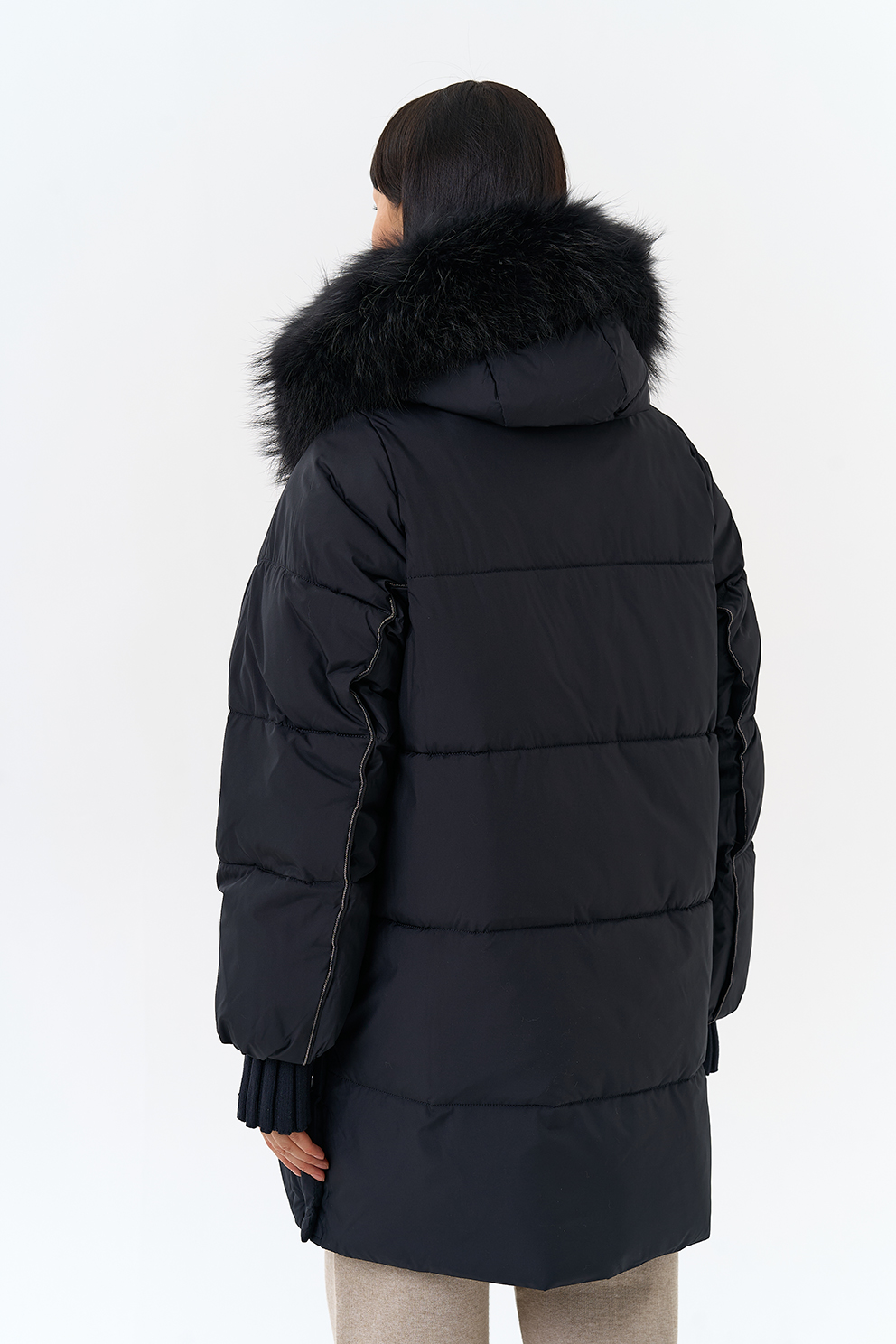 Крой воротника - капюшон, отделка енот