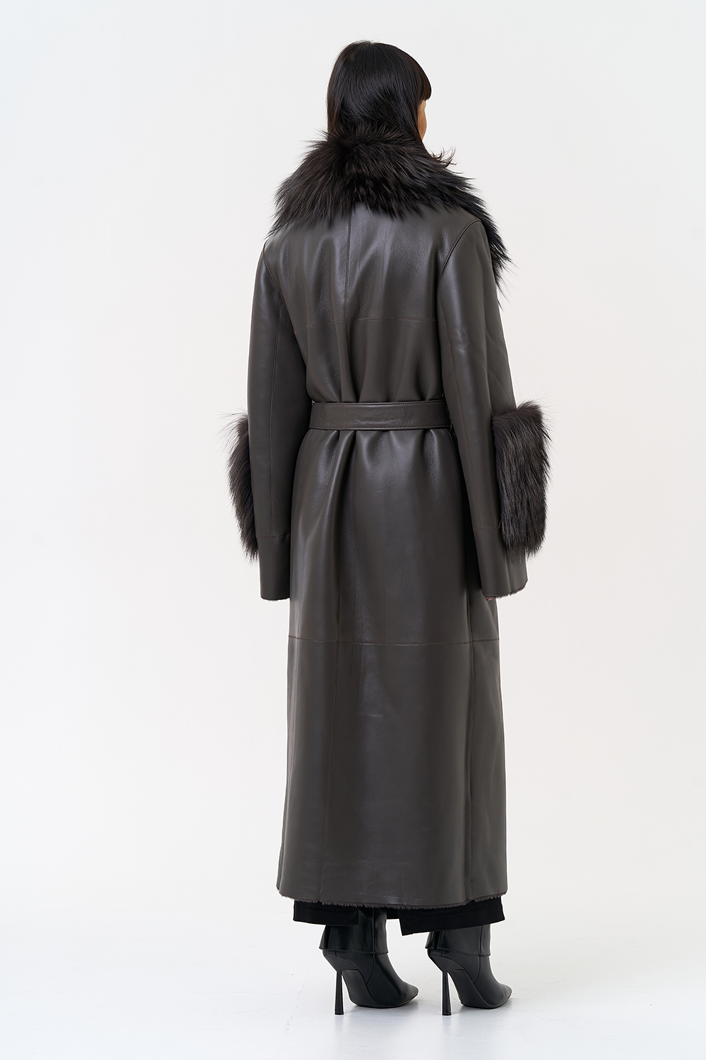 Отделка рукава - мех лисы, цвет серый