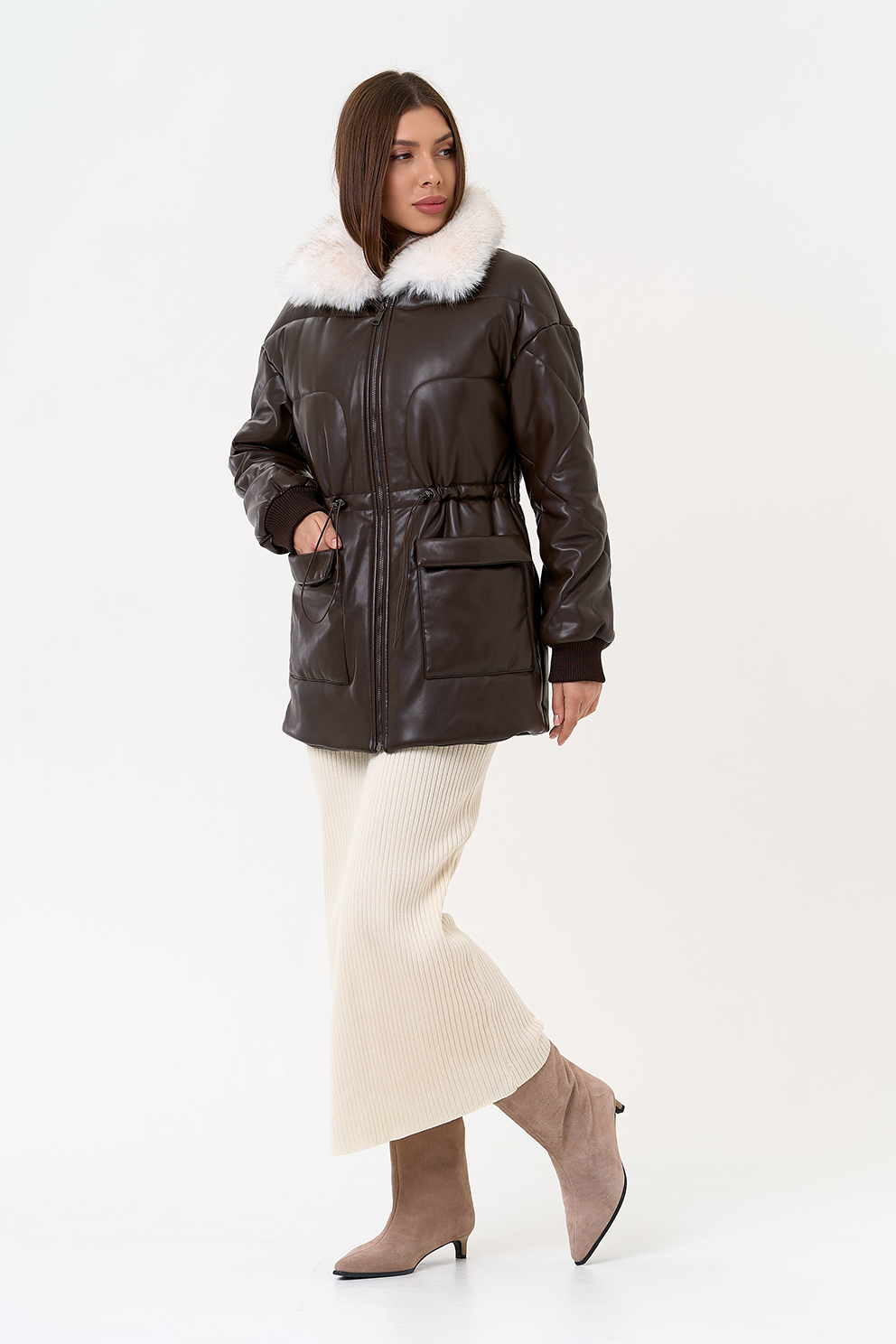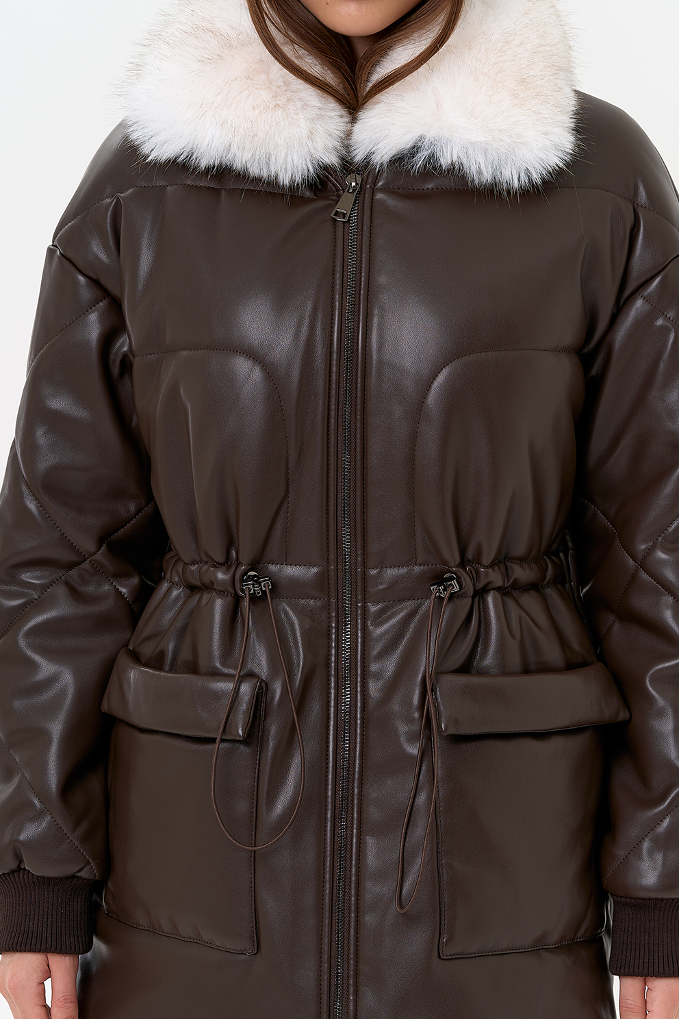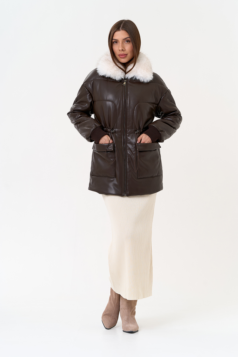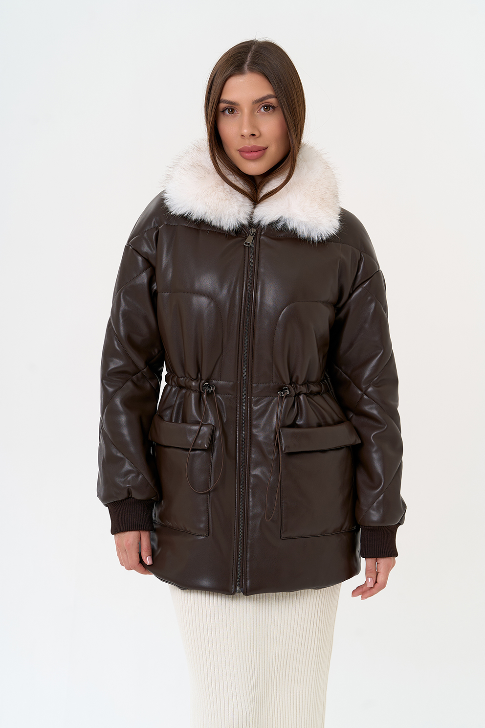 Отделка воротника - съемный эко мех, цвет белый