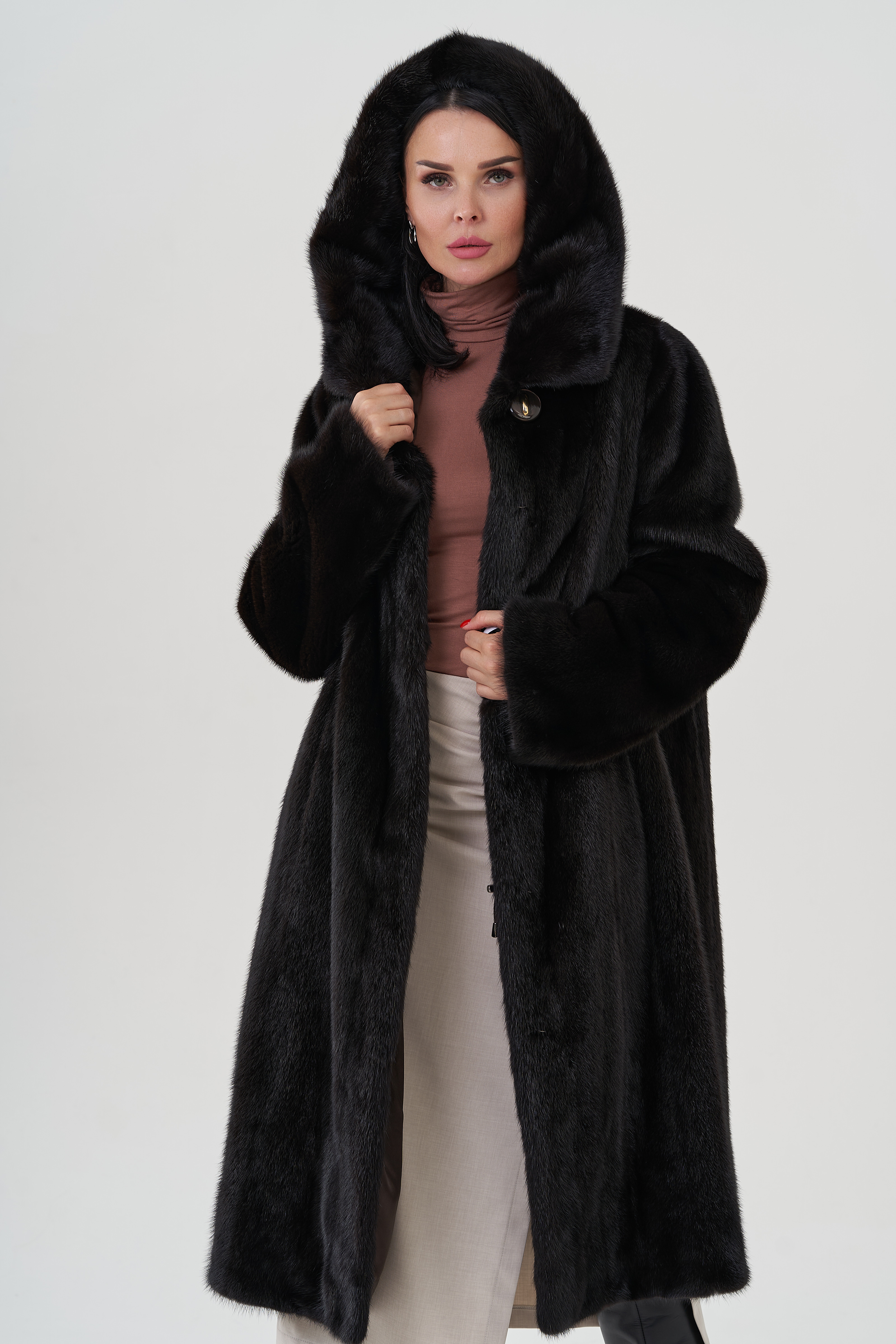 Шуба из норки с капюшоном